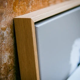 The oak frame brings warmth and naturalness to your interior. The subtle wood grain gives each artwork a timeless, refined look.